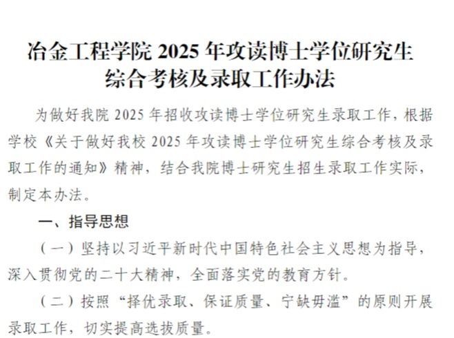 冶金工程学院2025年攻读博士学位研究生综合考核及录取工作办法