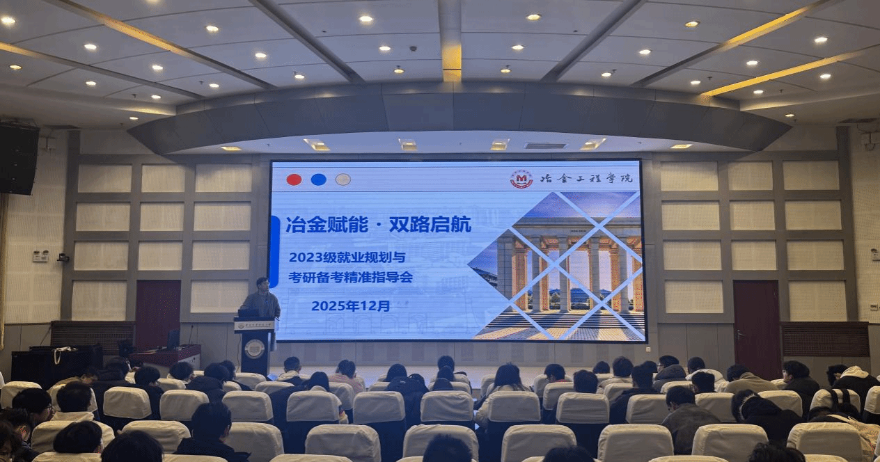 为引导学生学业发展方向,科学规划未来,强化考风考纪。冶金工程学院于12月3日在雁塔校区工科楼一楼报告厅召开2023级本科生年级大会,大会以“冶金赋能・双路启航”为主题,围绕就业规划与考研备考展开讲解。会议由23级辅导员岳家新主持,邀请尚研考研吴妮、新东方刘宇杰、好胜教育廖虎三位资深讲师作专题分享,23级全体本科生参与本次大会。